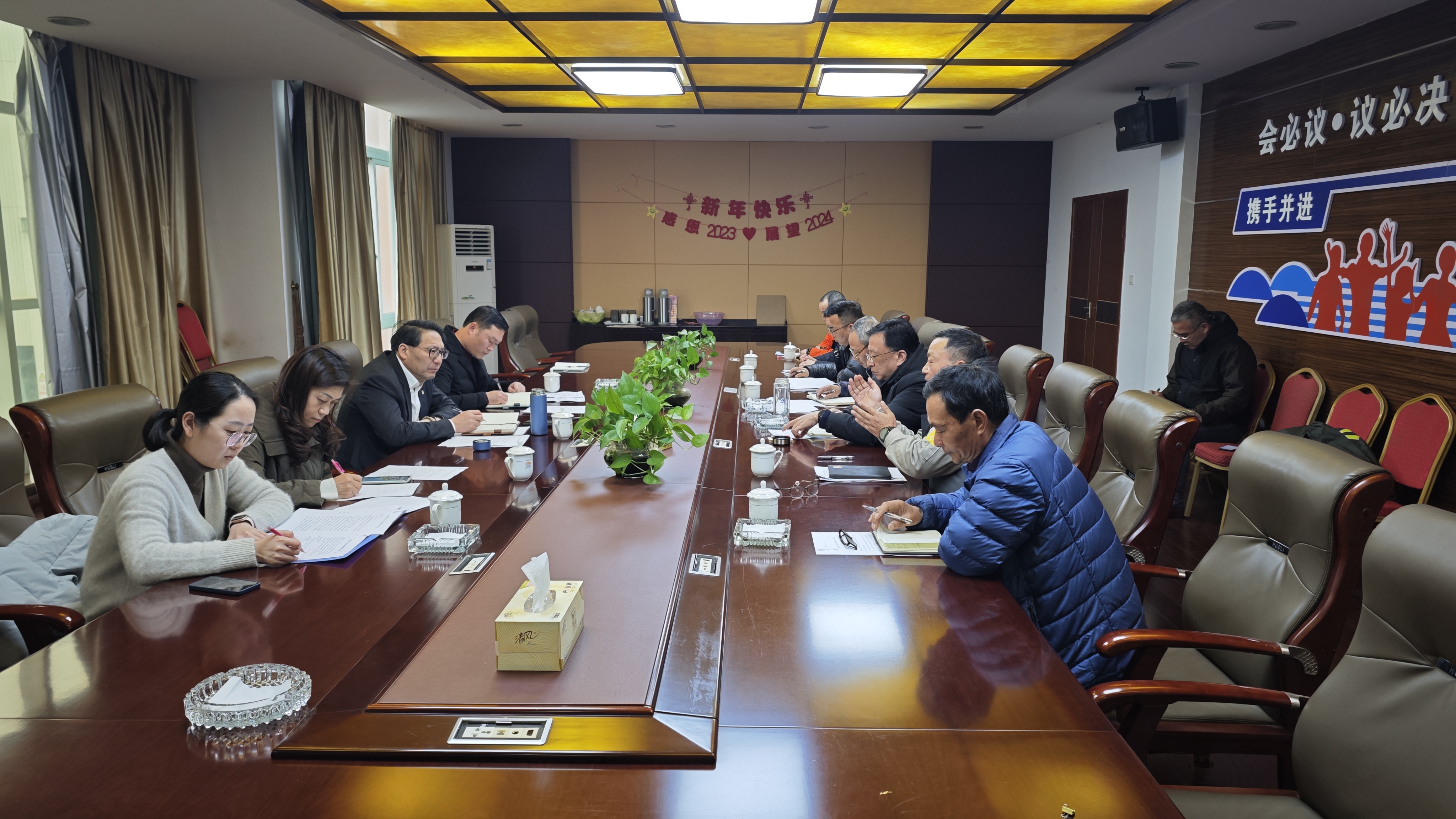 公司三楼会议室聚集了主管以上几十名人员参会,总经理邱海斌主持会议。1、首先介绍了新入职几名员工2、总结了2022年度工作,对一年的工作进行了肯定,同时也对2022年工作中所存在的不足进行分析。3、提出了2023年工作的目标及计划。 新的一年工作目标已明确,在做好安全保障下发扬优势补足短板,使修、拆、造、群众渔船四大板块并驾齐驱;新的一年全体员工将团结一致为公司的高速发展创造更高的价值。